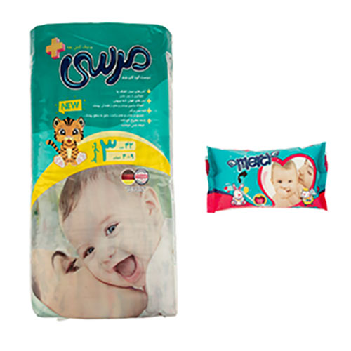 پوشک بچه مرسی سایز 3 بسته 42 عددی به همراه دستمال مرطوب