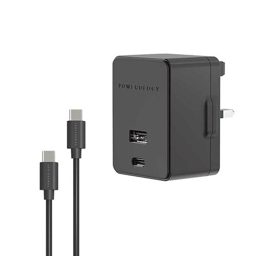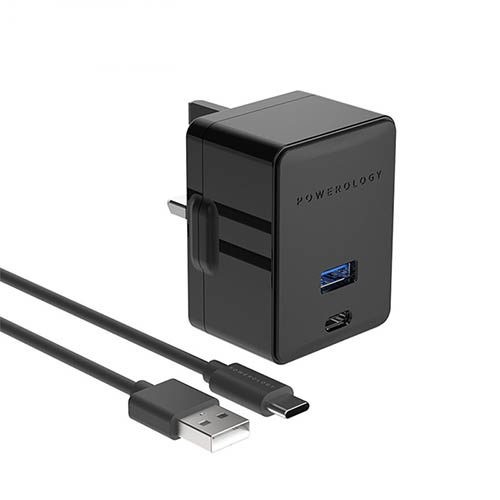 شارژر دیواری فست شارژ پاورولوژی 32 وات با کابل همراه