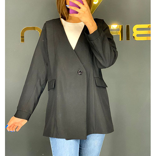 مانتو کتی تک یقه مزونی رنگ مشکی بیریوان