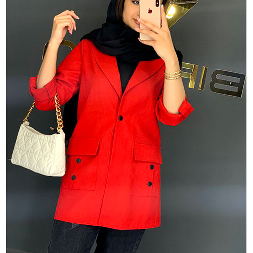 مانتو کتی اسپرت لنین آستین پاکتی رنگ قرمز بیریوان