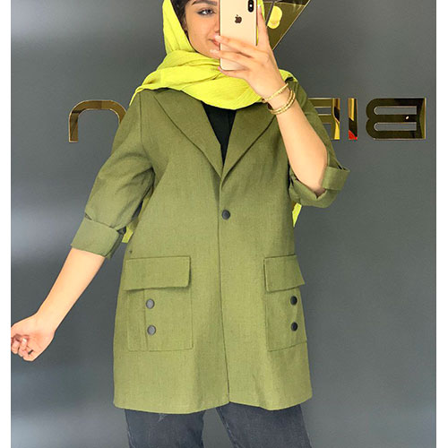 مانتو کتی اسپرت لنین آستین پاکتی رنگ سبز بیریوان