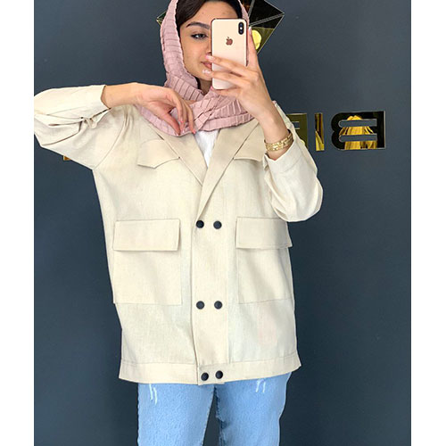 مانتو کتی اسپرت لنین آستین پاکتی رنگ کرم بیریوان