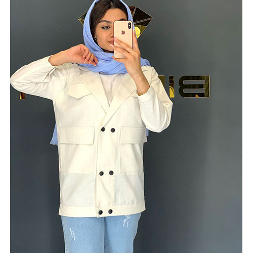 در قسمت رویه مانتو برای زیبایی بیشترشش دکمه قرار داده شده که در صورت علاقه می توان آن را به صورت جلو بسته هم مورد استفاده قرار داد.